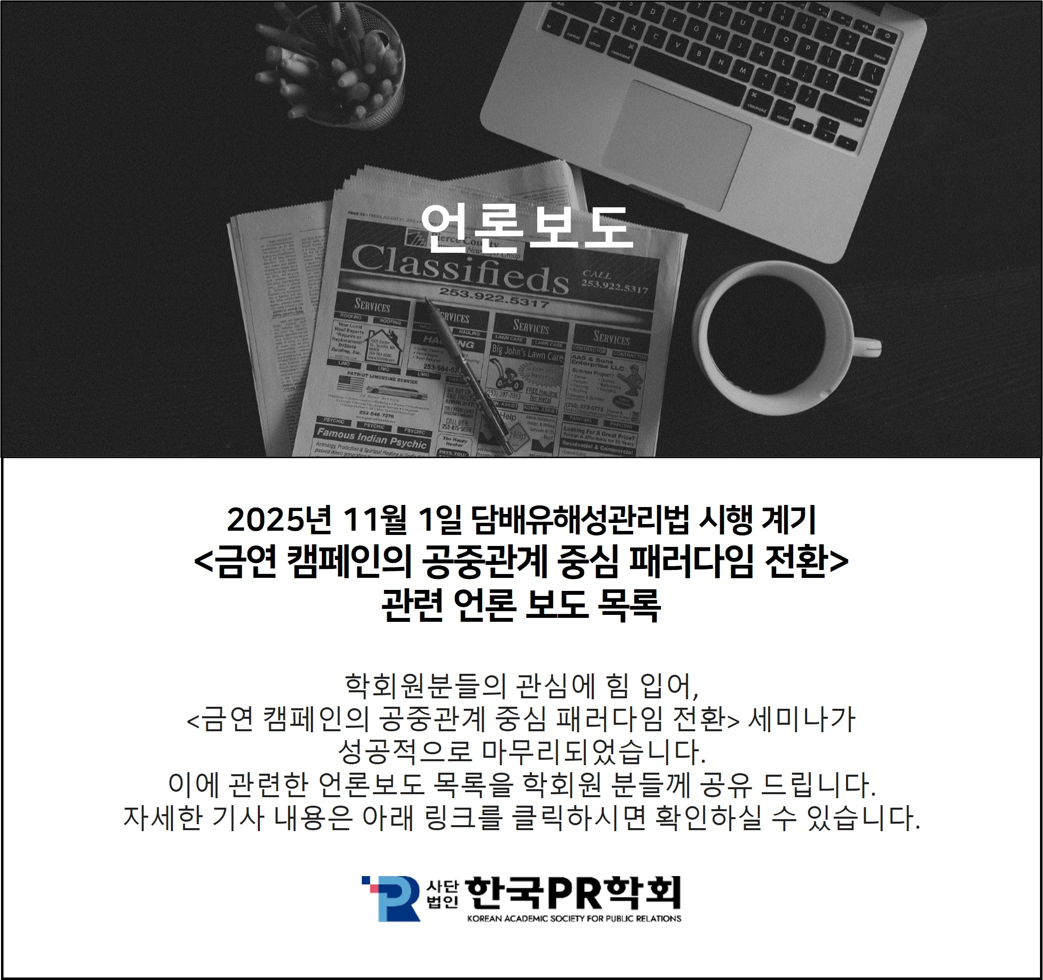[한국PR학회]는 정보주체의 이용정보를 저장하고 수시로 불러오는 ‘쿠키(cookie)’를 사용하지 않습니다.