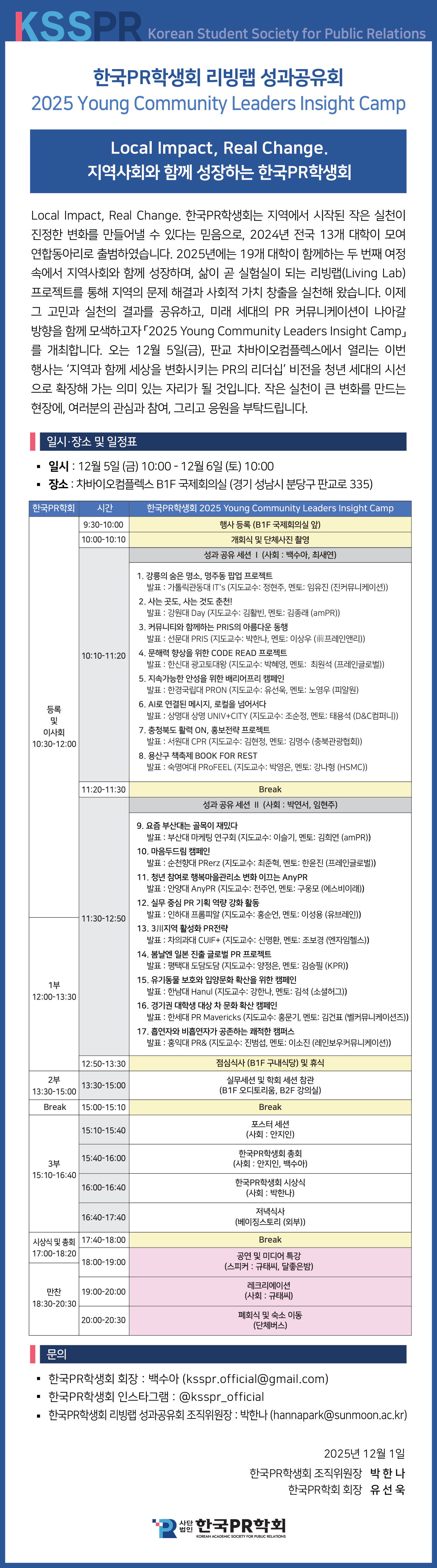한국PR학생회 리빙랩 성과공유회 <2025 Young Community Leaders Insight Camp> 세부일정 안내